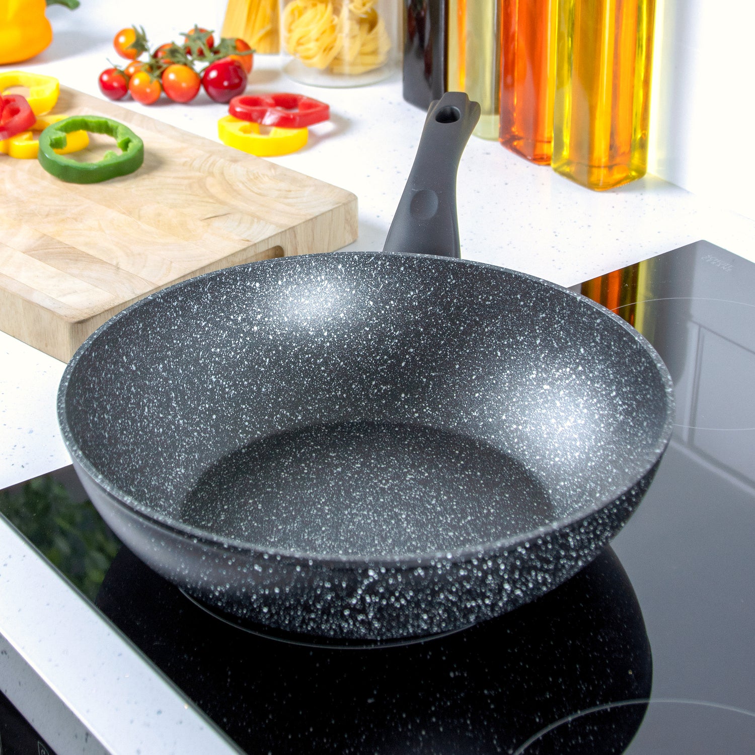 The wok itself is a stylish black colour, and the marble effect adds to the modern style, ensuring it looks the part in any design of kitchen.