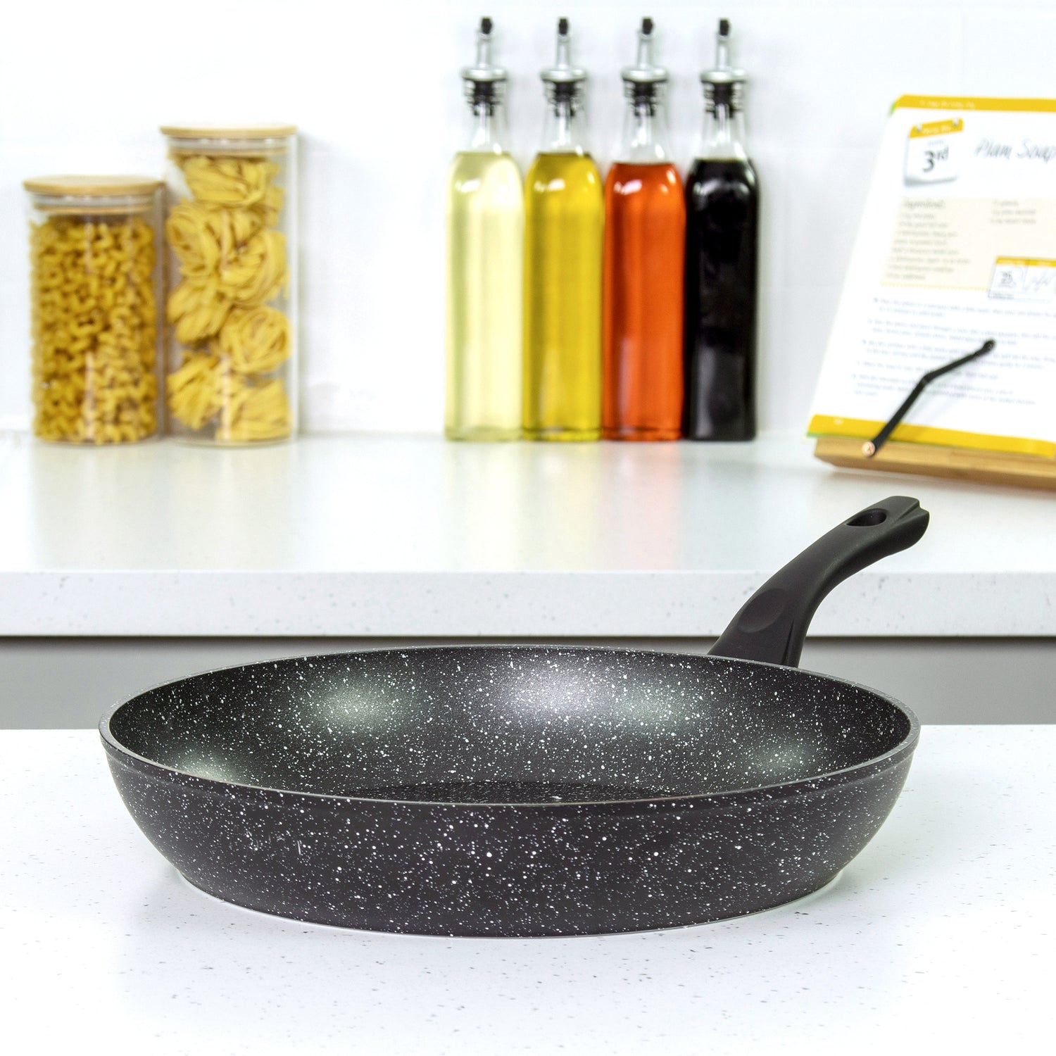 The pan itself is a stylish black colour, and the marble effect adds to the modern style of the pan, ensuring it looks the part in any design of kitchen.