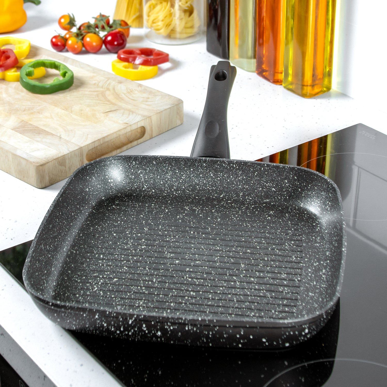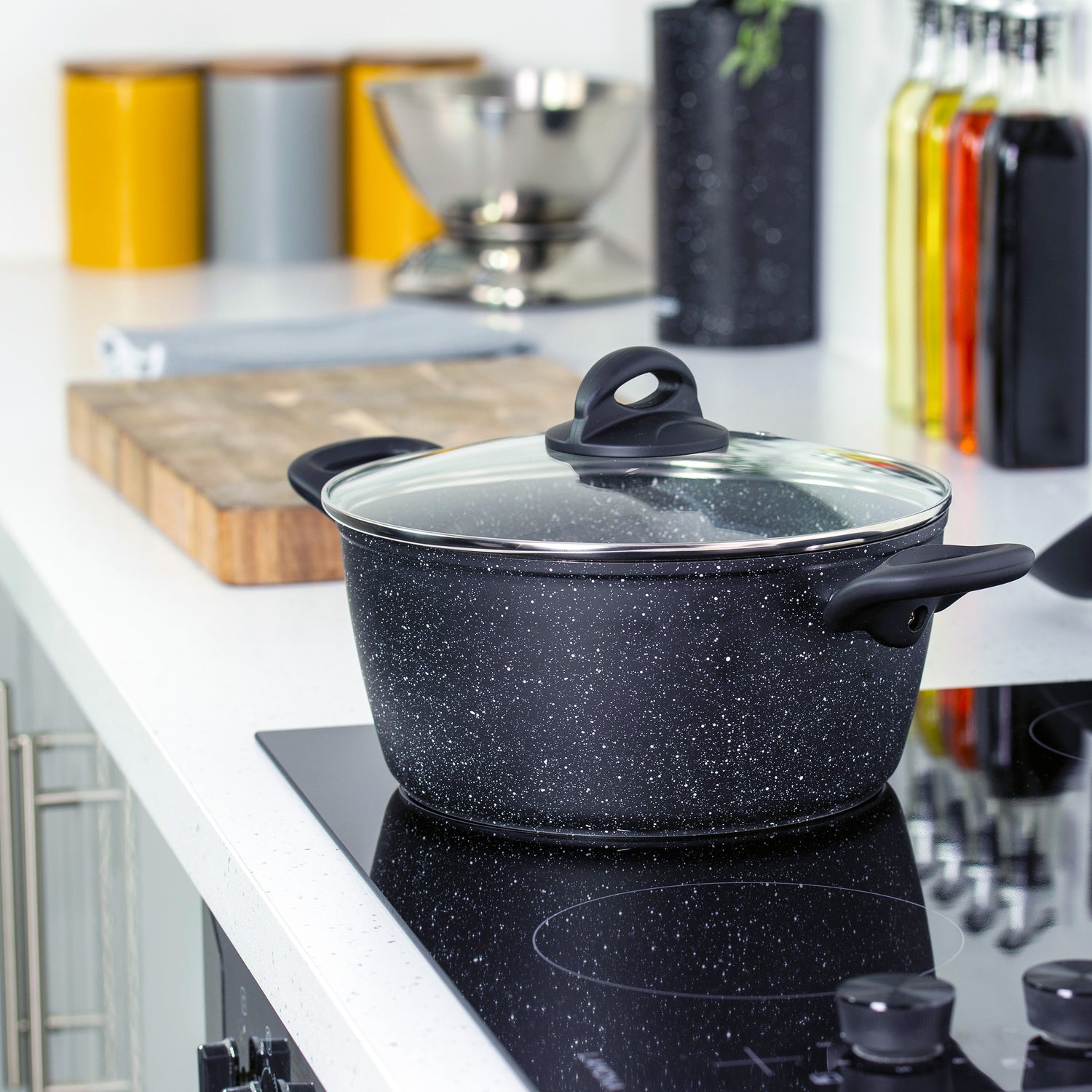 The pans themselves are a stylish black colour, and the marble effect adds to the modern style of the pans, ensuring they look the part in any design of kitchen.