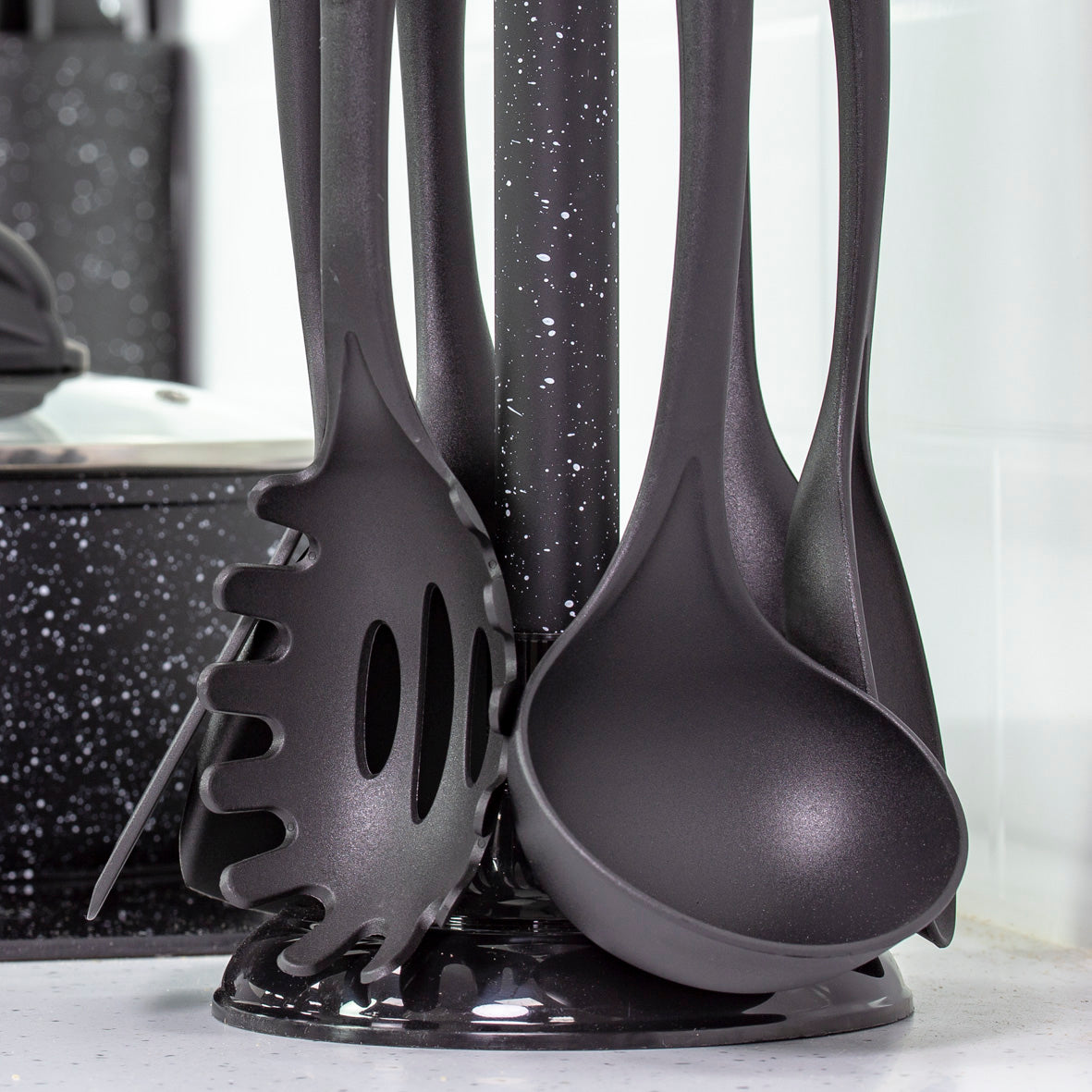 - Set of 6 Nylon Utensils, including a Ladle for pouring the perfect measure of pancake batter and a spatula to help in the awkward flipping phase;