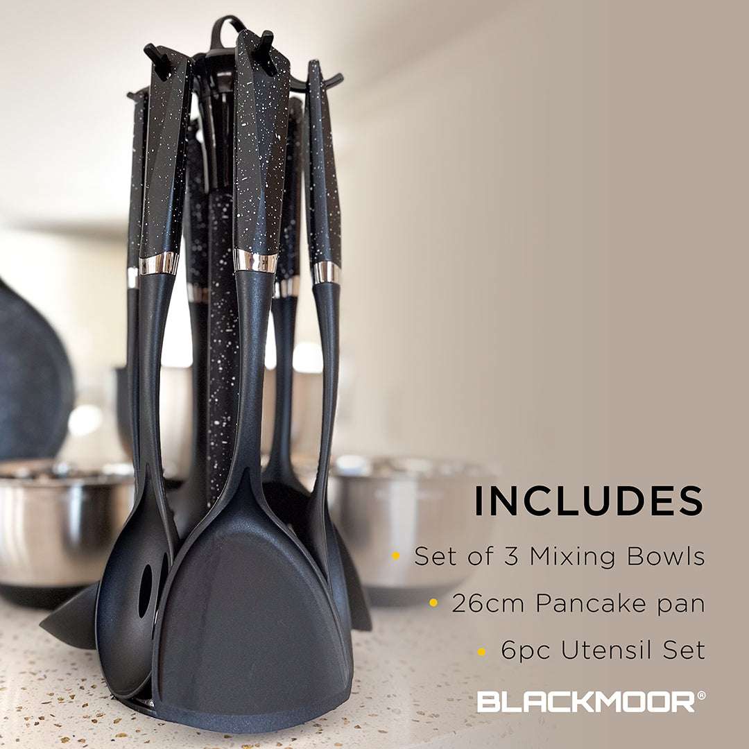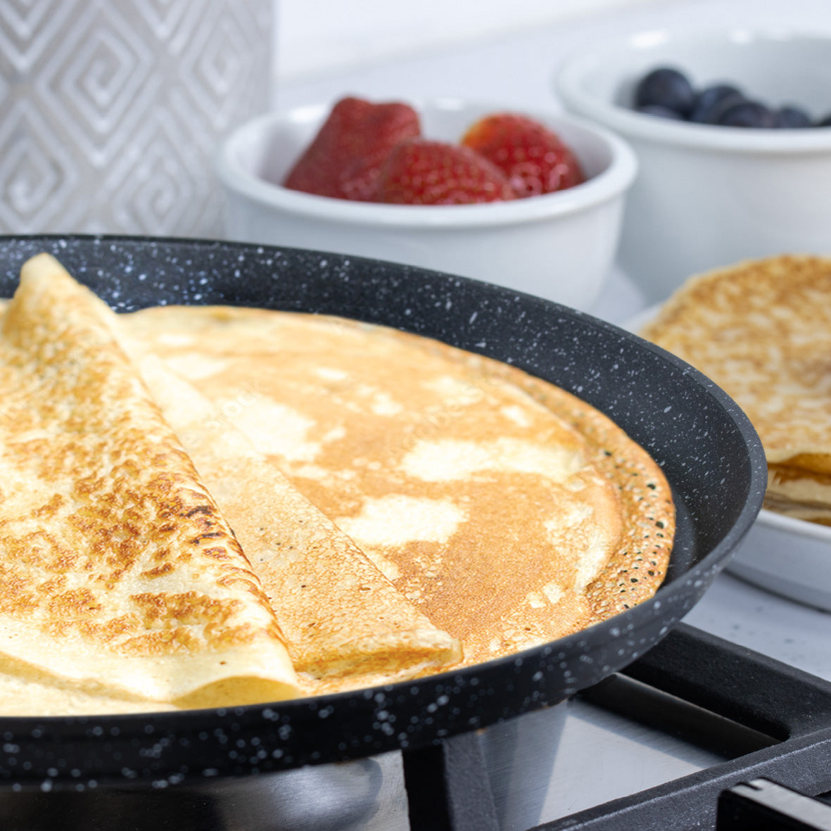 - 26cm Non-Stick Pancake Pan in a stylish Black marble granite finish;