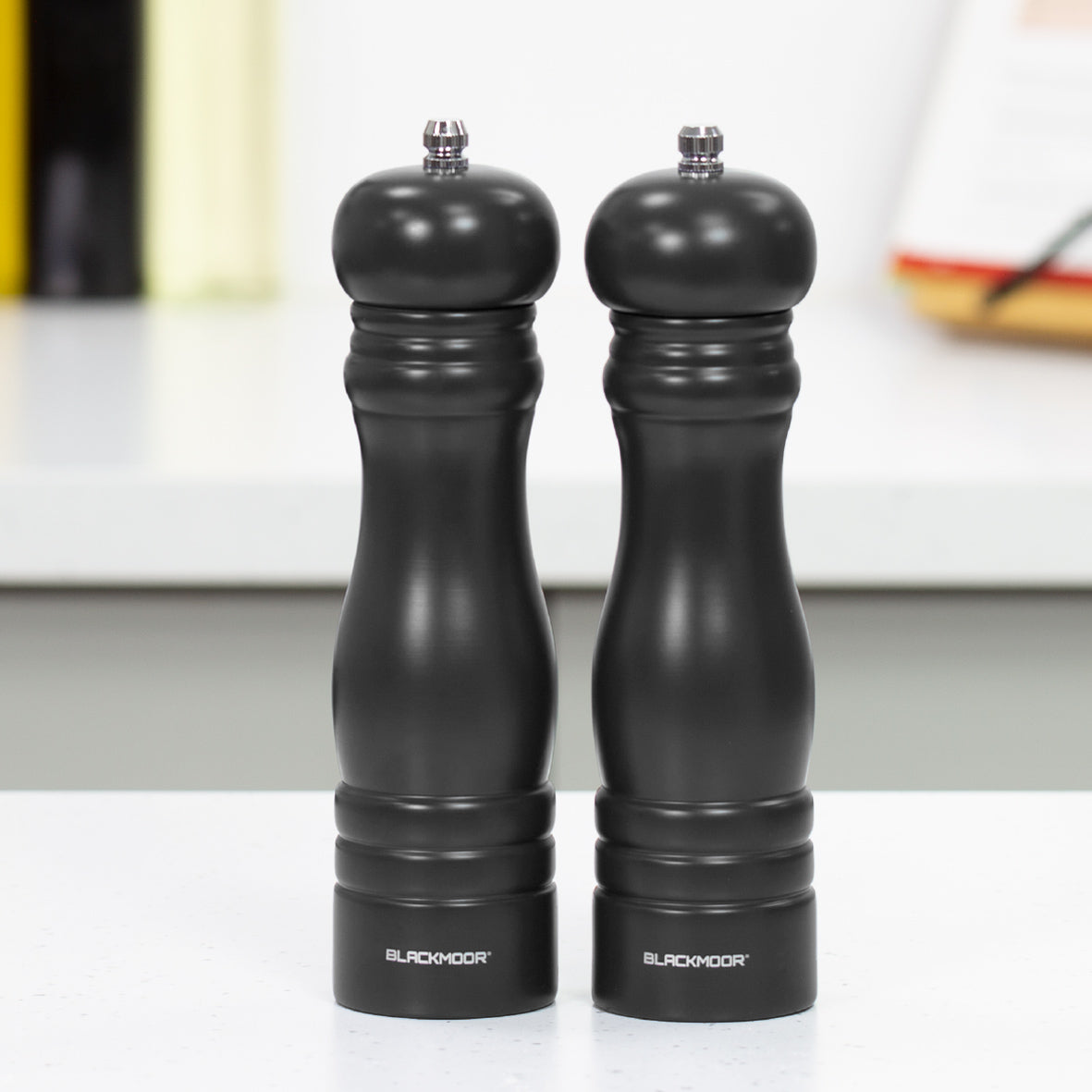 This black coloured wooden salt and pepper mill set delivers the traditional method of manually grinding these classic seasonings to provide you with additional flavouring to foods at mealtimes.