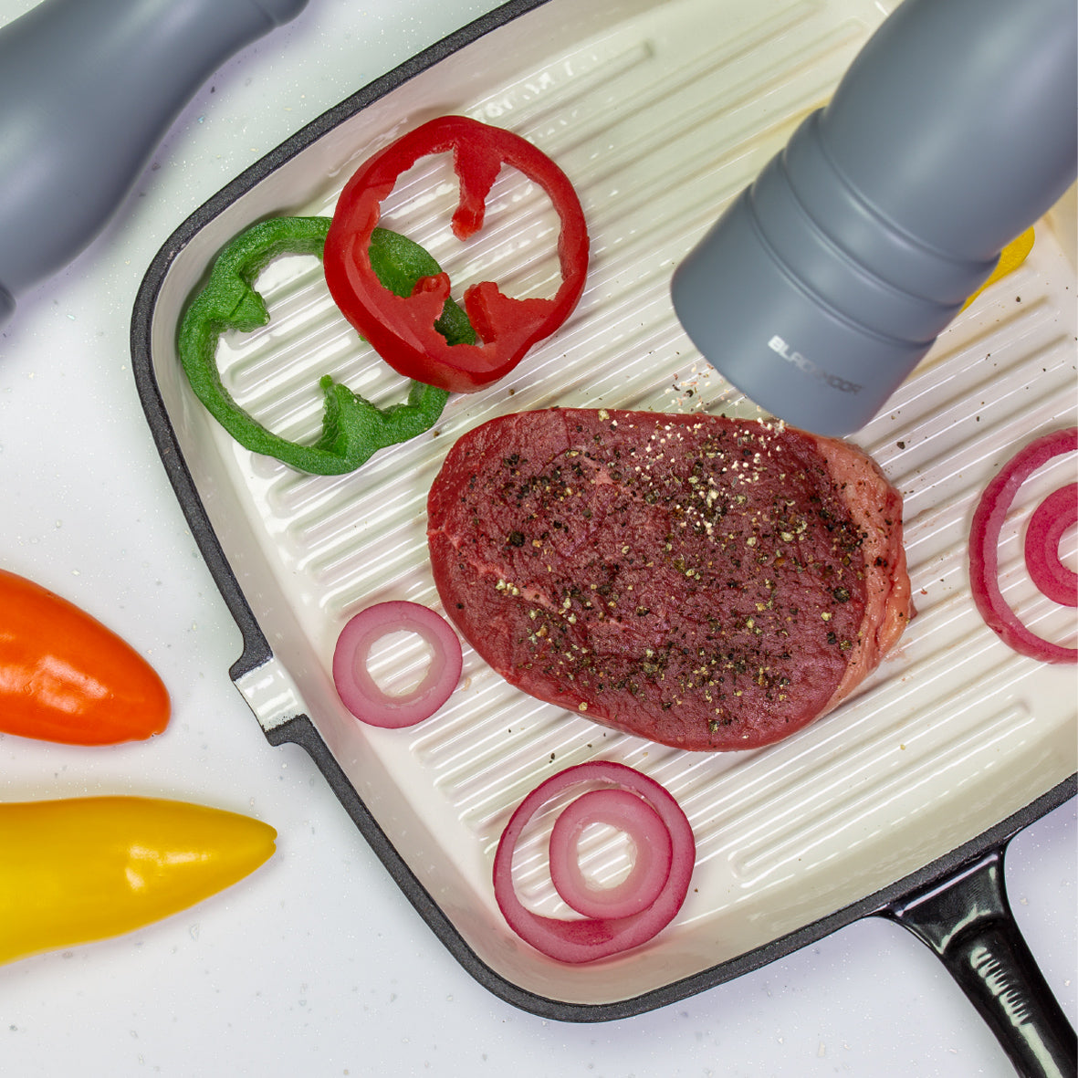 This grey coloured wooden salt and pepper mill set delivers the traditional method of manually grinding these classic seasonings to provide you with additional flavouring to foods at mealtimes.