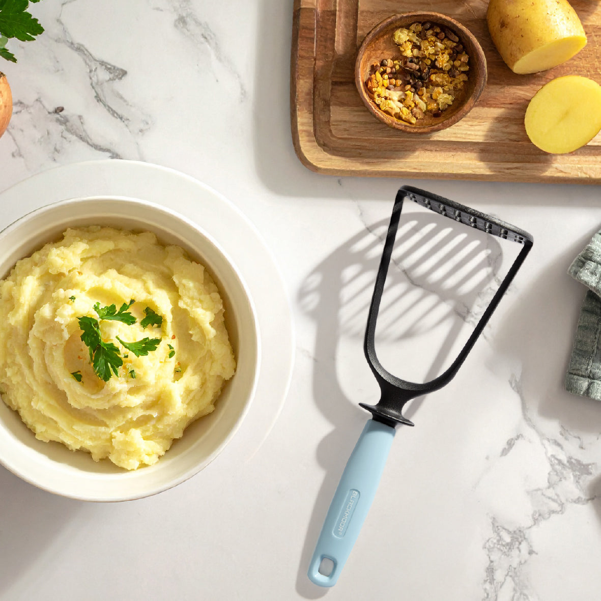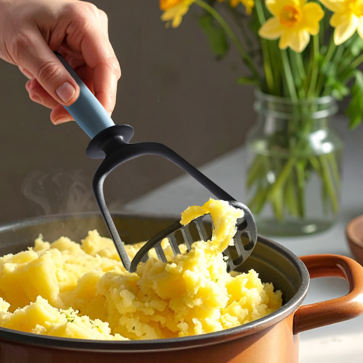 Smooth, lump-free mash has never been easier. This nylon masher is strong enough to tackle potatoes, carrots, and other root vegetables, yet gentle on non-stick pans and bowls. With its sturdy handle and lightweight feel, it makes meal prep simple – and it’s dishwasher safe for quick clean-up.
