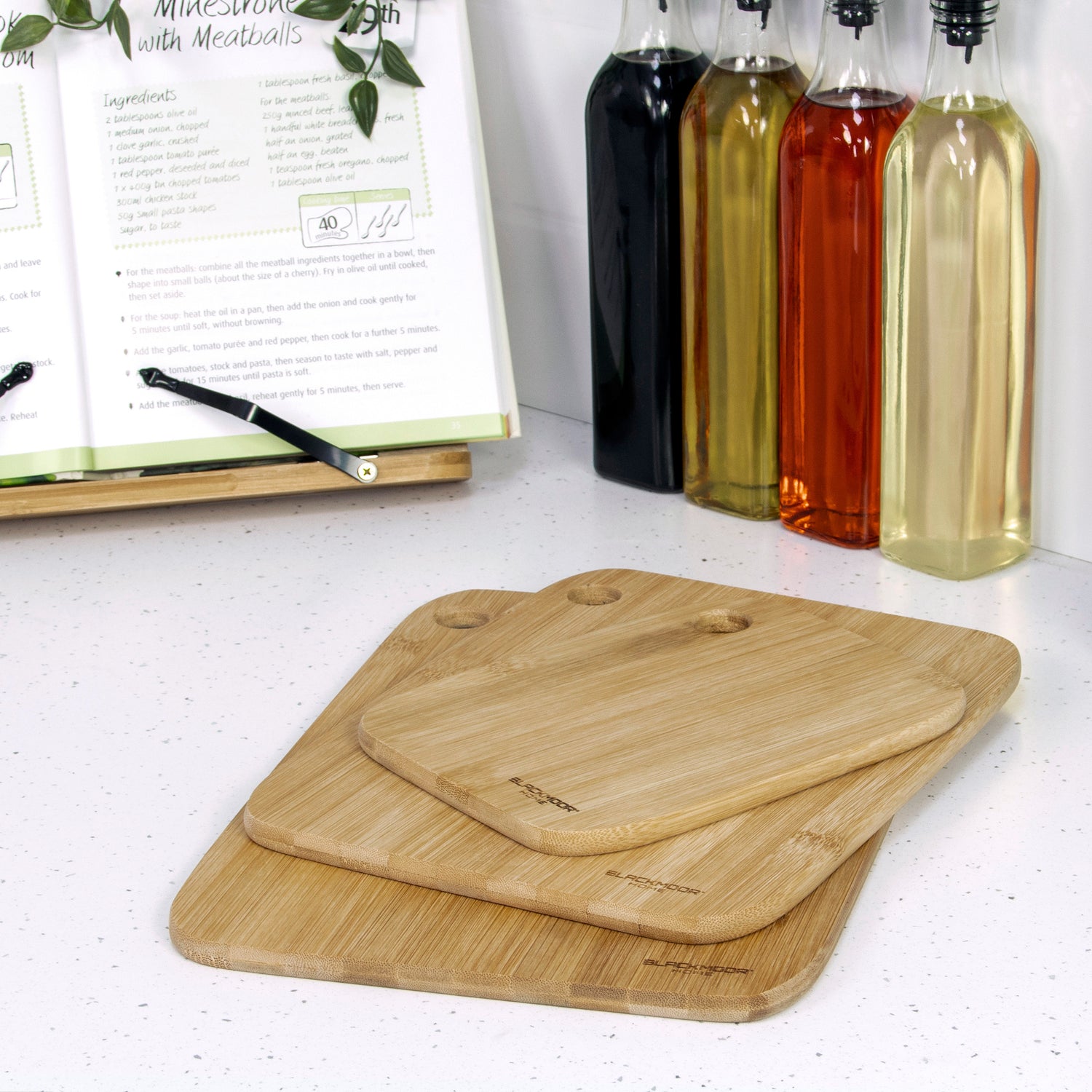 This set of 3 bamboo chopping boards provide some versatile functionality to your kitchens, as not only are they perfect for chopping and preparing a wide range of meats, fish, vegetables, cheeses, fruits and breads, but they are also perfect for serving canapes and nibbles on at dinner parties too.
